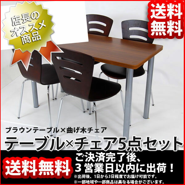50%OFF/チェア4脚とテーブル1台の5点セット/送料無料/激安『テーブル&チェア5点セット』【テーブルサイズ(幅)119cm(奥行き)59cm(高さ)71.2cm/ダークブラウン/送料無料/組立品 価格: 19,000円 レビュー評価:0.0 レビュー数:0 オフィスの会議室や、ご家庭のダイニングテーブルなど様々な用途で活躍!汚れに強く、お手入れもラクラク!◇セット内容:テーブル1台+チェア同色4脚◇全国送料無料♪※沖縄・離島は別途お見積り致します。◇テーブルカラー:ダークブラウン◇チェアカラー:ブラウンorナチュラル◇サイズ:テーブル:幅119cm×奥行き59cm×高71.2cmチェア:幅46.5×奥54×高87 (SH47)cm◇材質:テーブル天板:ポリエステル紙化粧繊維板、フラッシュ加工テーブル脚:シルバー粉体塗装イス:積層合板&スチール◇7日後にお届け予定♪オフィスの会議室や、ご家庭のダイニングテーブルなど様々な用途で活躍!汚れに強く、お手 Supported by 楽天ウェブサービス |